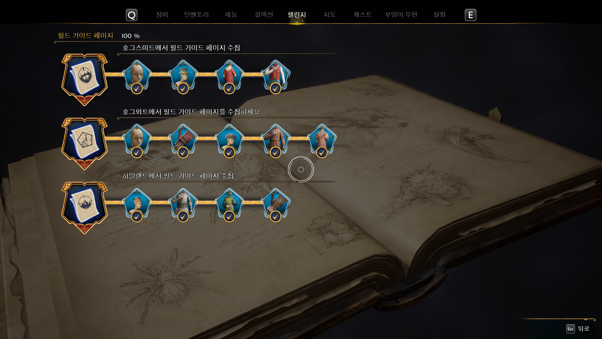 호그스미드 55개 필드가이드 페이지 위치 유튜브 링크