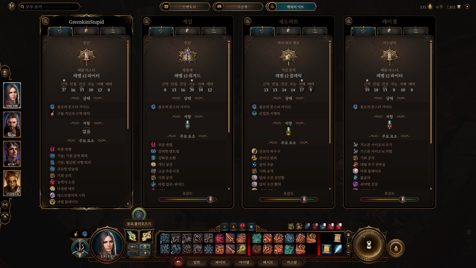 3. 파티 구성은 밀리클래스 2명 소서러 or 위자드 1명 클레릭 1명이 좋다.