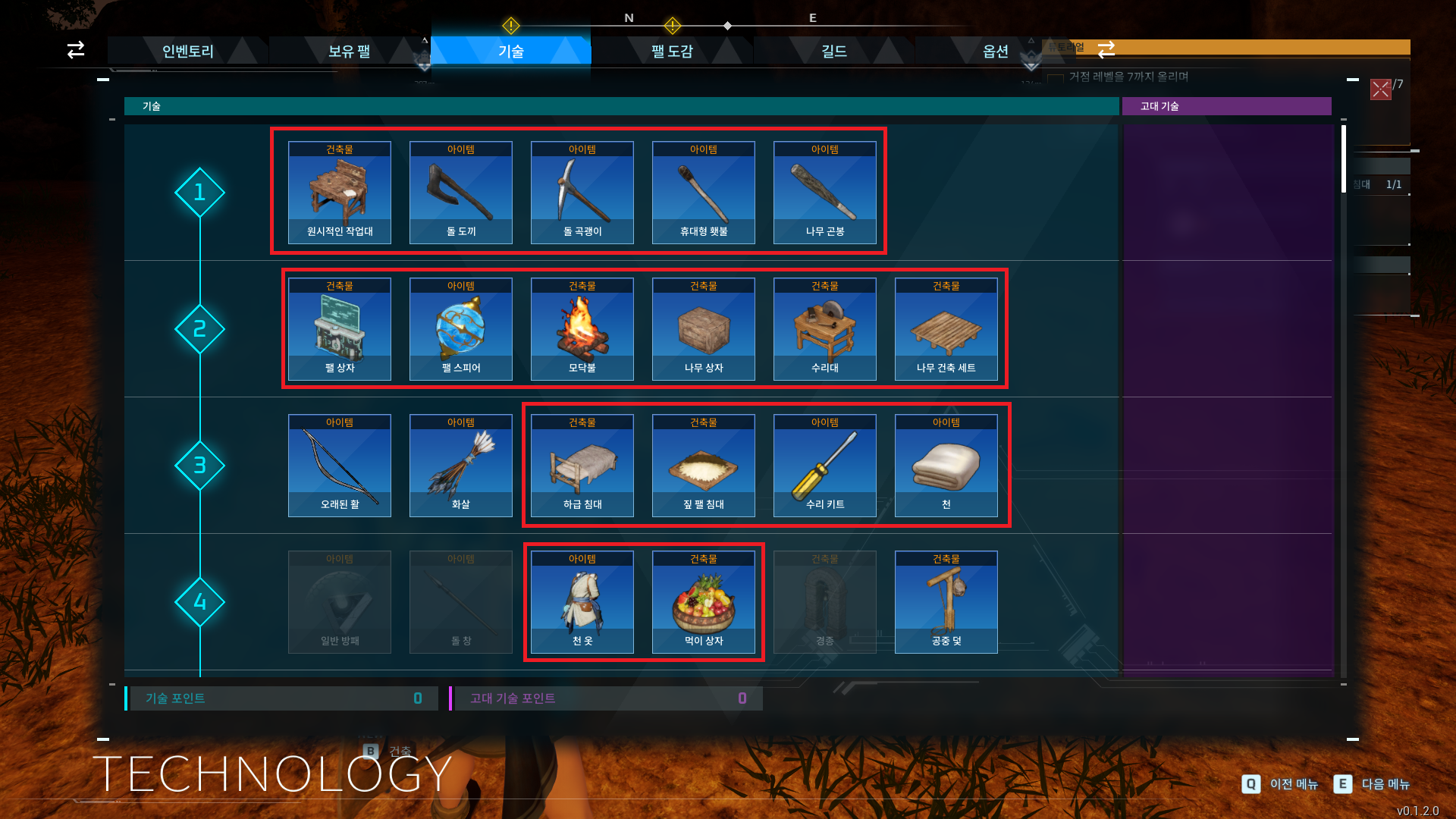2렙 구간 또한 가장 기본적이고 필수적인 장비와 건축물 트리이다.